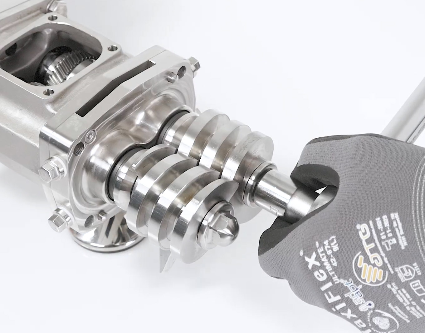 Hygienisches Design: Das Innendesign der FDS Nano ist offen und frei von jeglichen Toträumen. Vollständig umspülte Bereiche um die Gleitringdichtungen gewährleisten eine effektive Reinigung während der CIP-Phase, ohne dass die Pumpe zur Reinigung zerlegt werden muss. Dies führt zu einer hohen Betriebseffizienz.